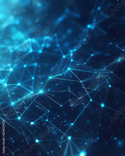 Abstract futuristic network structure with glowing blue nodes and lines. High tech digital design for backgrounds, sci-fi, and technology concepts.