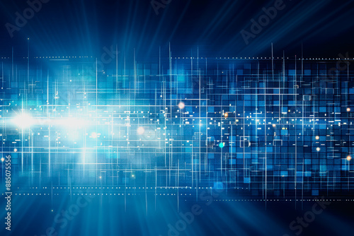 Abstract futuristic scene with vibrant blue lines and geometric patterns