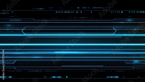 Abstract Futuristic Tech Background with Glowing Blue Lines and Digital Elements