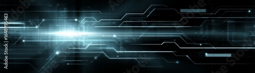 Abstract futuristic technology background featuring a dynamic composition of glowing neon lines and interconnected data cubes floating in a digital cyberspace environment.