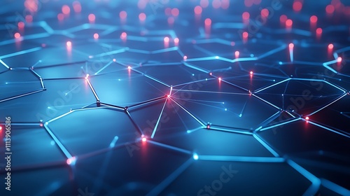 Abstract futuristic technology background with glowing nodes and interconnected lines on a digital surface