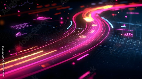 Abstract Futuristic Technology Interface with Neon Lights. Illustration background for presentation and wallpaper