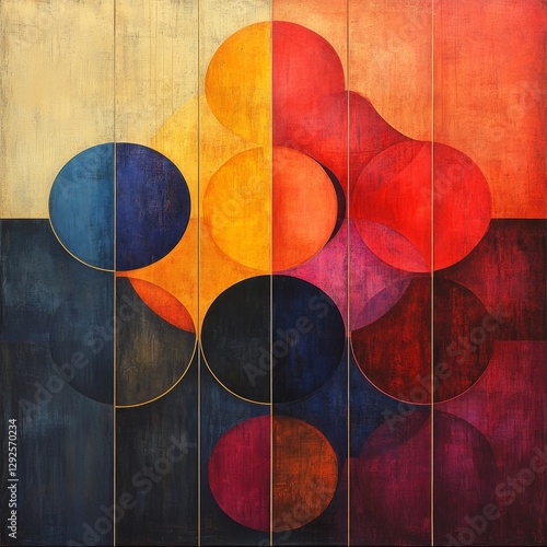 Abstract Geometric Art with Circular Shapes and Bold Colors Creating a Modern Aesthetic for Contemporary Spaces