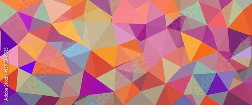 Abstract geometric background featuring overlapping, multicolored triangles forming a complex pattern, digital art, polygon