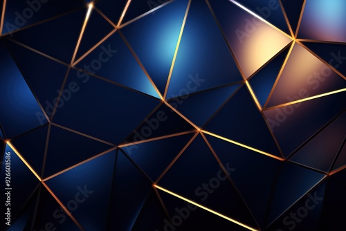 Abstract geometric background with blue and gold colors.