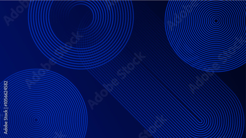 Abstract Geometric Background With Blue Line Patterns. Modern abstract design blue circles with geometric details. The symmetry and deep blue tones create a calming and futuristic aesthetic