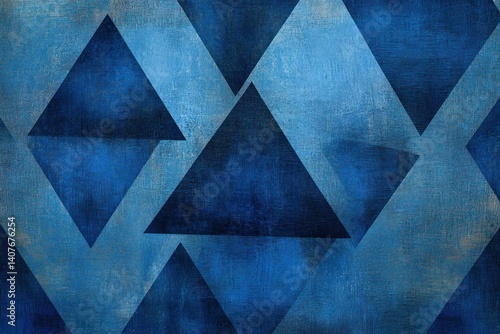 Abstract Geometric Background with Blue Triangle and Diamond Shapes in Monochromatic Palette
