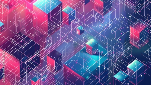 Abstract geometric background with futuristic technology cubes. Glowing cubes on dark background, blockchain concept.
