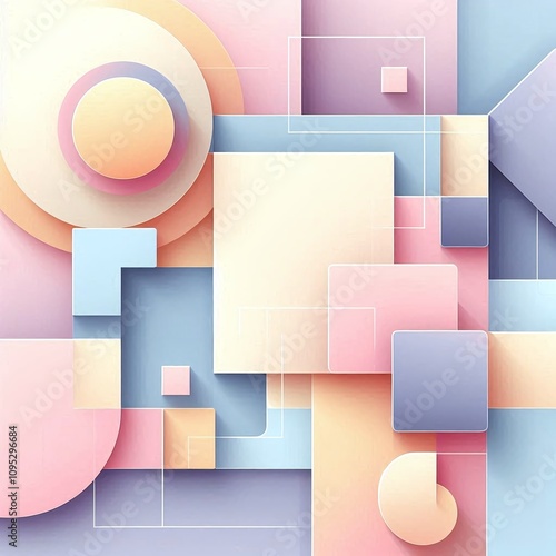 Abstract geometric background with pastel triangles in pale pink and blue tones, creating a modern pattern. Generative AI