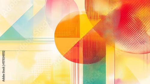 Abstract geometric background with vibrant colors and overlapping shapes.