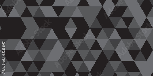 Abstract geometric black and gray background seamless mosaic and low polygon triangle texture wallpaper. Triangle shape retro wall grid pattern geometric ornament tile vector square element.