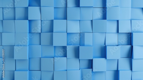 Abstract geometric blue wall texture, featuring intricate squares and cubes, ideal for modern interiors, digital art backgrounds, or creative design projects.