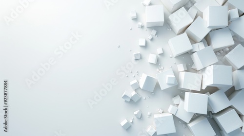 Abstract geometric composition featuring chaotic cubes in a minimalist white setting, designed for corporate design templates and creative presentations with ample copy space.