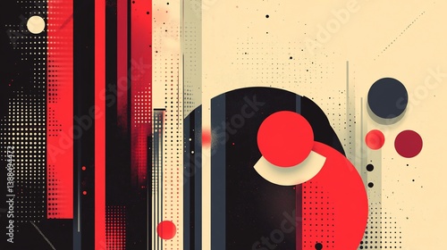 Abstract Geometric Composition in Red, Black, and Beige