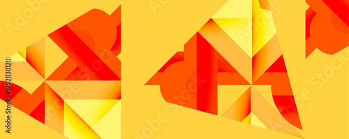 Abstract geometric composition with interlocking circular and angular shapes, featuring smooth gradients and sharp contrasts on a white background