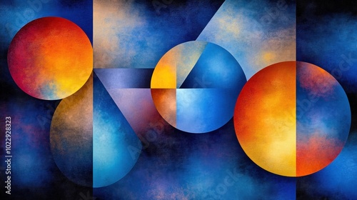 Abstract geometric composition with vibrant colors and shapes creating a dynamic visual experience.