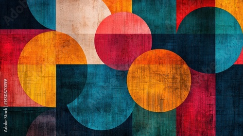 Abstract geometric design featuring colorful circles and shapes.