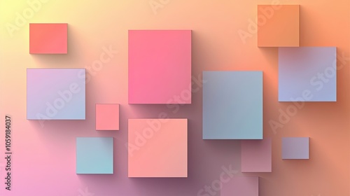 Abstract Geometric Design with Pastel Colored Squares on a Gradient Background