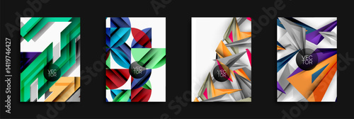 Abstract geometric designs. Bright colors, sharp angles, modern vector illustrations. Four distinct compositions presented.