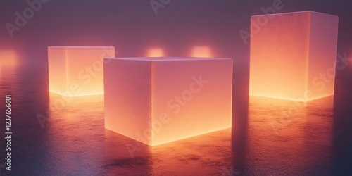 Abstract geometric glowing blocks with soft lighting, 3d render, Generative AI