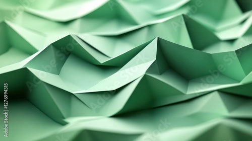 Abstract geometric green paper waves with sharp, angular shapes and depth