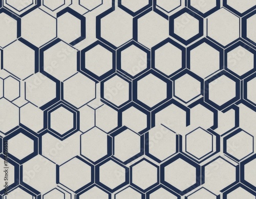 Abstract Geometric Hexagon Pattern: Seamless Navy Blue and Beige Tile Texture