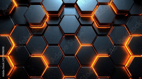 Abstract Geometric Hexagonal Pattern With Glowing Orange Edges On Dark Metallic Surface