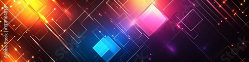 Abstract Geometric Lines: A vibrant, dynamic digital artwork featuring a network of interconnected lines and geometric shapes, glowing with a spectrum of radiant colors.