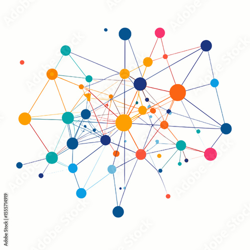 Abstract Geometric Network of Interconnected Colorful Nodes and Lines on White Background for Science and Technology Conceptual Illustration