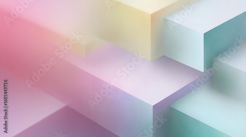 Abstract geometric pastel blocks in an isometric stepped pattern featuring soft color gradients and subtle textures creating a modern and serene