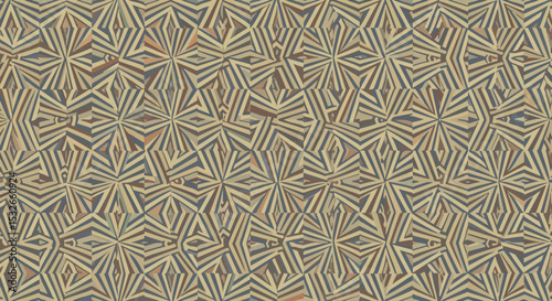 Abstract Geometric Pattern Beige and Blue Interlocking Shapes