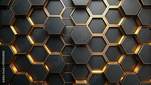 Abstract Geometric Pattern of Black and Gold Hexagons