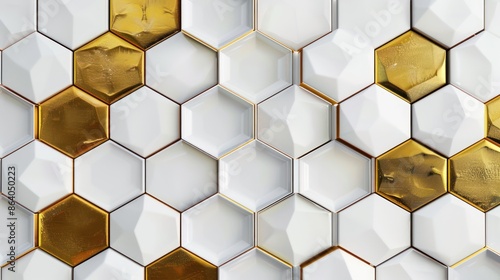 Abstract Geometric Pattern of Gold and White Hexagons