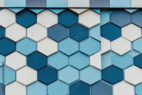 Abstract geometric pattern of hexagonal tiles in shades of blue and white