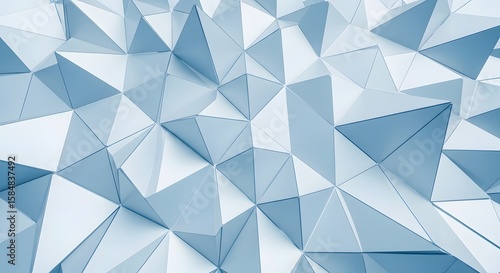 Abstract geometric pattern of light blue, three-dimensional triangular shapes forming a textured surface