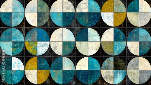 Abstract Geometric Pattern with Blue and Yellow Circular Design