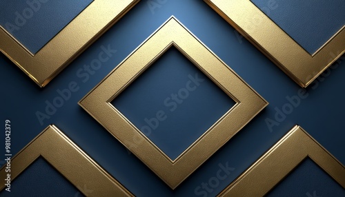 Abstract Geometric Pattern with Golden Frames on a Navy Blue Background