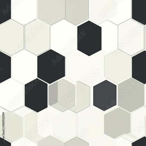 Abstract Geometric Pattern with Hexagons in Black, White, and Gray