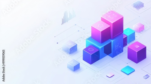 Abstract geometric pattern with isometric cubes and lines on white background.