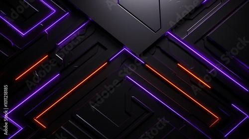 Abstract Geometric Pattern with Neon Lights and Black Background