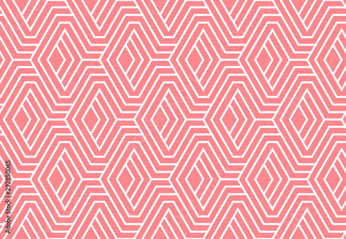 Abstract geometric pattern with stripes, lines. Seamless vector background. White and pink ornament. Simple lattice graphic design