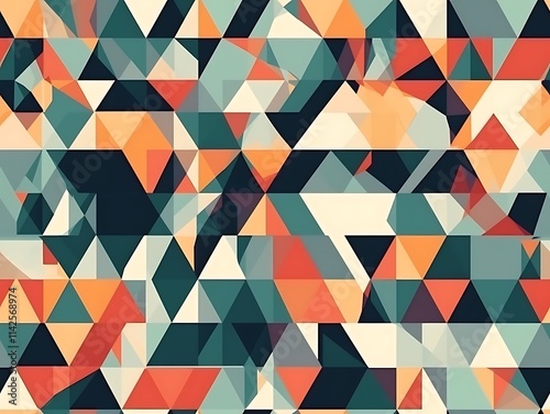 Abstract Geometric Pattern with Triangles in Warm and Cool Tones