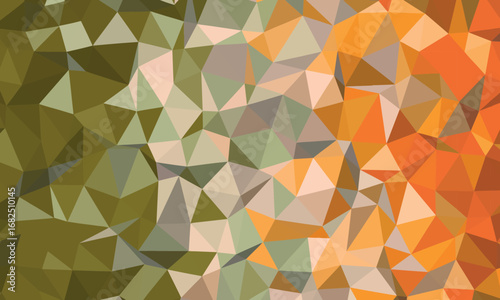 Abstract Geometric Polygonal Mosaic Pattern With Warm Autumn Colors Transitioning From Green To Orange