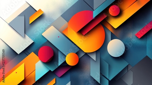 Abstract geometric shapes design, vibrant colors, digital art, website background