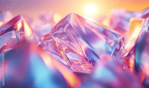 Abstract geometric shapes emitting soft iridescent light, 3d render, Generative AI