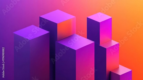 Abstract geometric shapes in vibrant purple and orange gradient background.