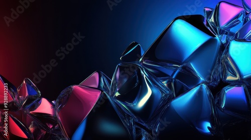 Abstract geometric shapes with vibrant lighting in blue and red hues.