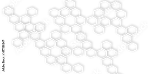 Abstract geometric technology 3d out line hexagonal pattern with subtle gray shadows creating a dimensional honeycomb effect clean and modern white background
