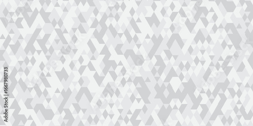Abstract geometric white and gray background seamless mosaic and low polygon triangle texture wallpaper. Triangle shape retro wall grid pattern geometric ornament tile vector square element.