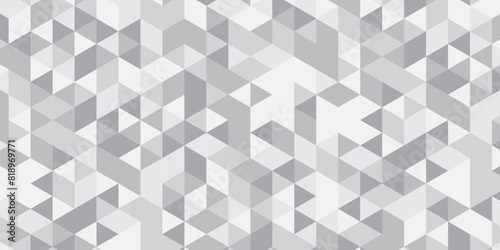 Abstract geometric white and gray background seamless mosaic and low polygon triangle texture wallpaper. Triangle shape retro wall grid pattern geometric ornament tile vector square element.